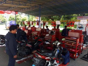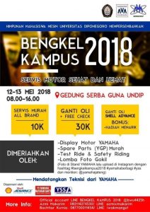 Semarang-Located in the yard of the Undip Multipurpose Building (GSG), the Mechanical Student Association held the 2018 CAMPUS WORKSHOP event. The event which took place on 12-13 May 2108 was an activity under the auspices of the Interest, Talent, and Anger, Diponegoro University Mechanical Student Association which aims as a form of service to the community around Tembalang by Mechanical Engineering Mahsiswa supported by PT. Yamaha Motor Indonesia and PT. Shell Indonesia in providing cheap service and cheap anti-oil for motorcycles.