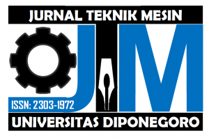 The Department of Mechanical Engineering is published by the Department of Mechanical Engineering, Faculty of Engineering, Undip as a medium for publishing scientific works for undergraduate mechanical engineering graduates. This journal is a summary of the final project or thesis for undergraduate students in the Mechanical Engineering Department.