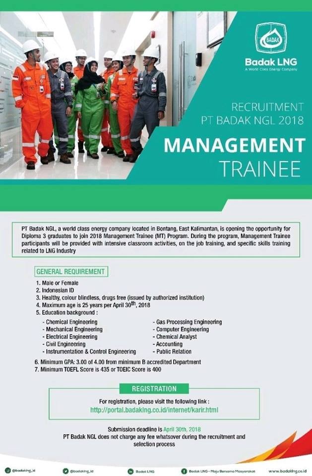 Saat ini PT Badak NGL membuka kesempatan bagi alumni Teknik Mesin untuk bergabung. Berikut ini leaflet informasi syarat rekruitmen dimana yang perlu diperhatikan adalah IPK minimal 3,0 dan nilai TOEFL 435. Selamat mencoba dan semoga diterima bagi adik-adik alumni Teknik Mesin Undip. (mnd)