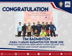 Alhamdulilah kembali perwakilan mahasiswa Teknik Mesin mengharumkan nama Teknik Mesin dengan menjadi juara pada cabang: