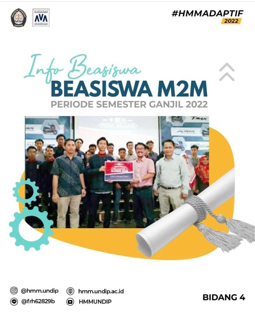 Pendaftaran beasiswa M2M periode semester ganjil 2022 akan dibuka lagi, bagi cah mesin yang ingin mendapatkan beasiswa M2M, yuk langsung bisa menyiapkan persyaratannya;
