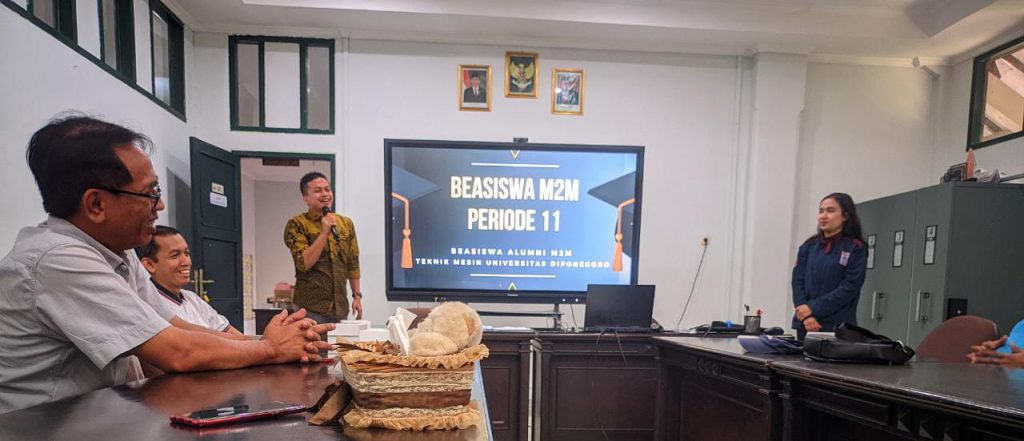 Pada hari Sabtu, 2 September 2023 di ruang rapat A301 Departemen Teknik Mesin diadakan serah terima Beasiswa Alumni – M2M secara simbolis. Alhamdulillah, dari tahun ke tahun, mulai tahun 2018, giat pemberian beasiswa ini telah berlangsung dan masuk ke Periode ke-11 (5.5 tahun). Acara dihadiri wakil dari Alumni, Dosen, dan Mahasiswa. Wakil dari Alumni: Sugeng M.T. [Sekjen IKA Mesin + GM Layanan Teknologi BRIN] dan Ir. Y. Ferry Baqdiono [wakil Donatur M2M + Maintenance Manager PT. Semen Grobogan]. Dari DTM diwakili: Sri Nugroho, PhD [Kadep], Dr. Rifky Ismail [Kaprodi S1], Prof. Dr. Tauviqirrahman [Sekprodi S1], dan Prof. Dr. Eflita Yohana [DPM]. Mahasiswa diwakili Panitia M2M – HMM dan 22 Penerima Beasiswa M2M.